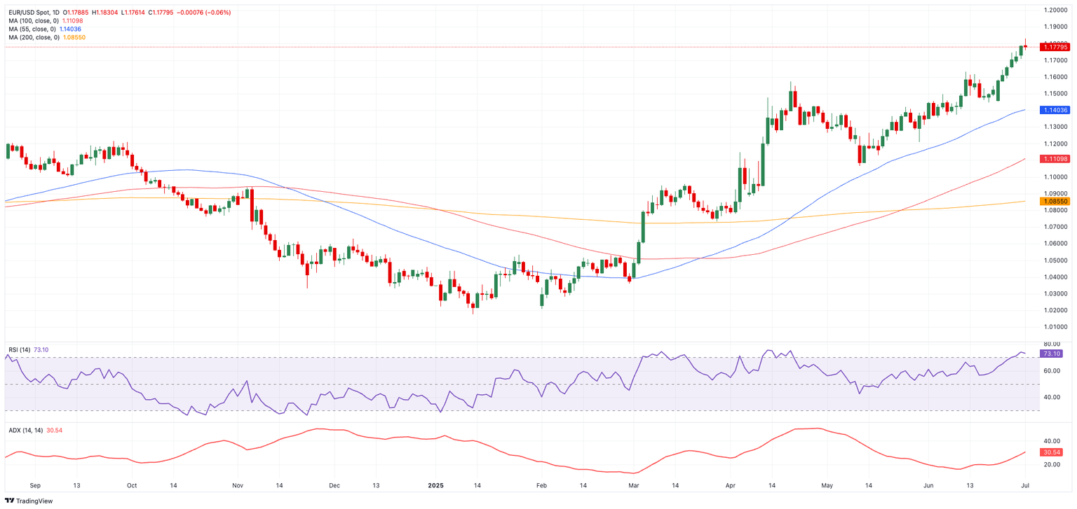 Immediate resistance stands at the 2025 ceiling of 1.1829 (July 1). A breakout above the latter would bring the September 2018 peak at 1.1815 (September 24) and the June 2018 high at 1.1852 (June 14) into play.