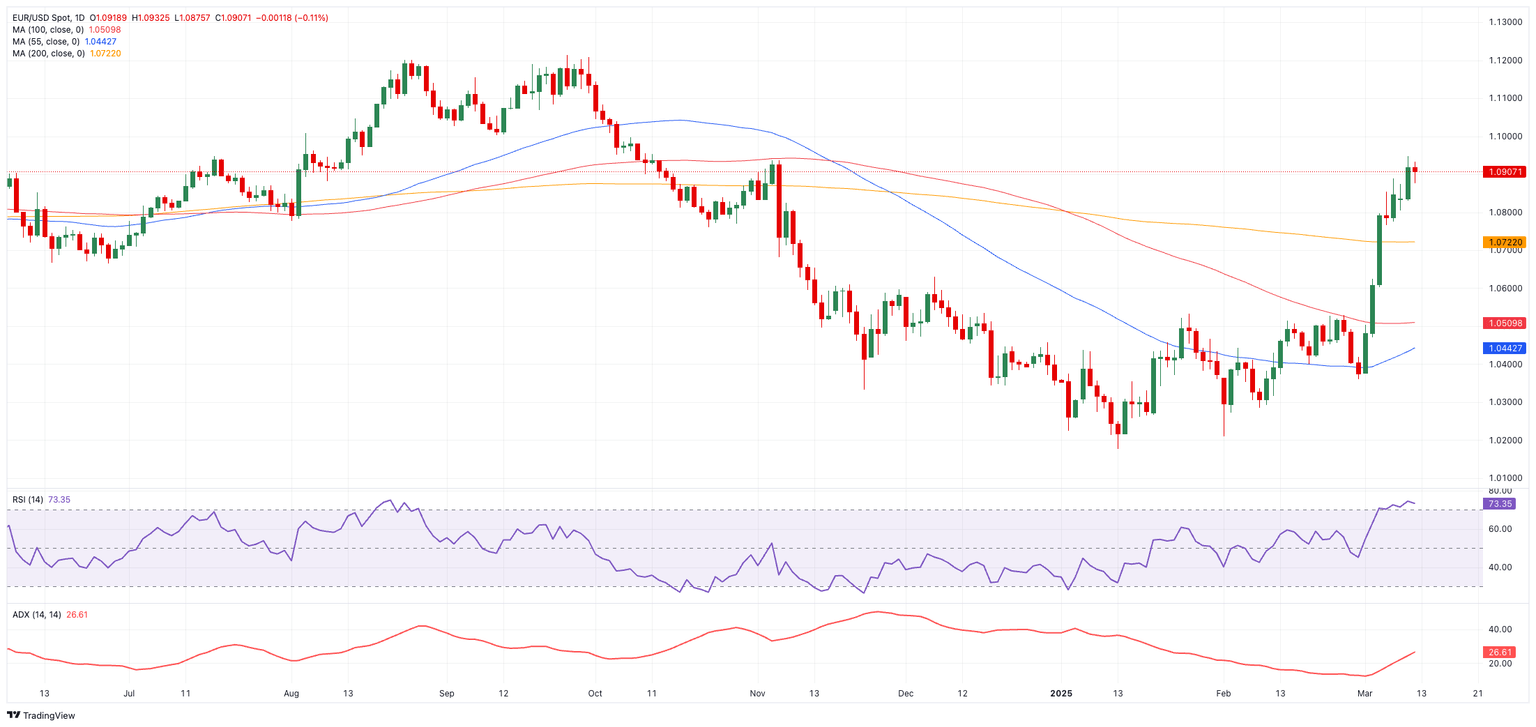 On the other hand, key support begins at the 200-day Simple Moving Average (SMA) around 1.0726, followed by the interim 100-day and 55-day SMAs at 1.0517 and 1.0442. Below those levels lie 1.0359 (February 28 low), 1.0282 (February 10 low), 1.0209 (February 3), and 1.0176 (the 2025 bottom from January 13).