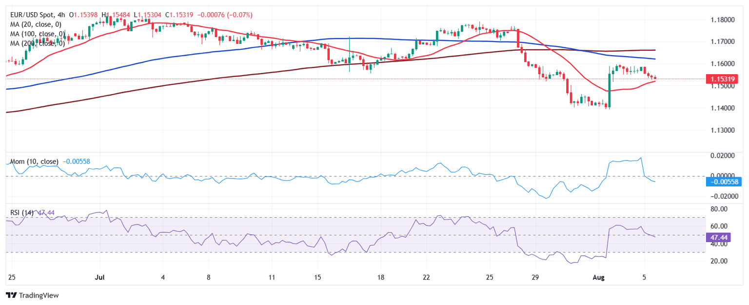 - EUR/USD trades with a modest bearish bias, still holding above the 1.1500 mark.