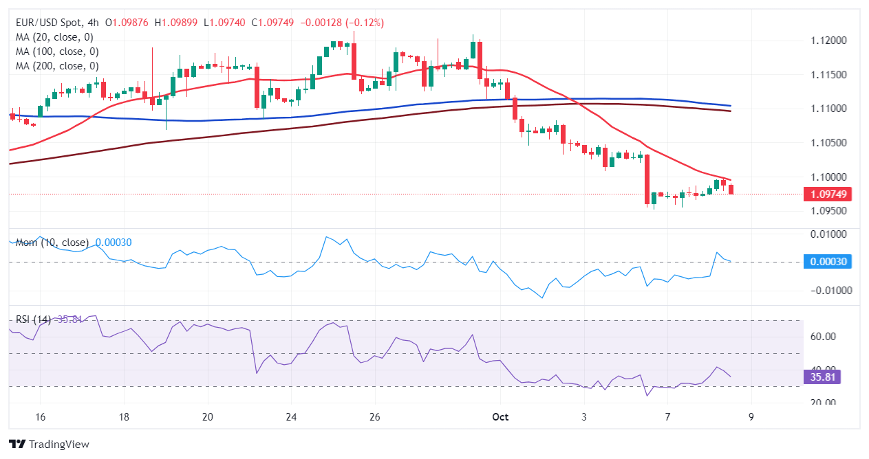 - EUR/USD keeps finding sellers ahead of 1.1000, risk skews to the downside.