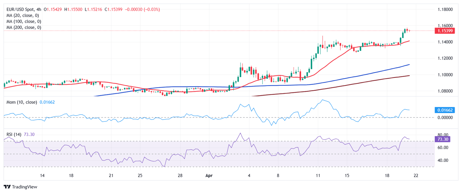 The EUR/USD pair surged past the 1.1500 mark on Monday, reaching levels that were last seen in November 2021 amid a continued US Dollar (USD) sell-off. The Greenback plummeted following an extended weekend, with thinned market conditions exacerbating the slide. Most Asian and European markets remained closed on Easter Monday.