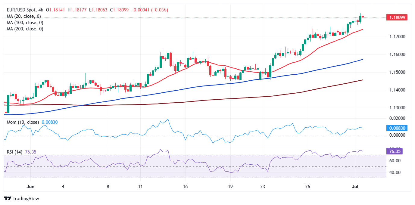 The EUR/USD pair retains gains near multi-year highs, trading at around 1.1800 and heading towards the September 2021 high of 1.1908. The US Dollar (USD) keeps suffering from mounting tensions between the United States (US) President Donald Trump and the Federal Reserve (Fed) Chair Jerome Powell.