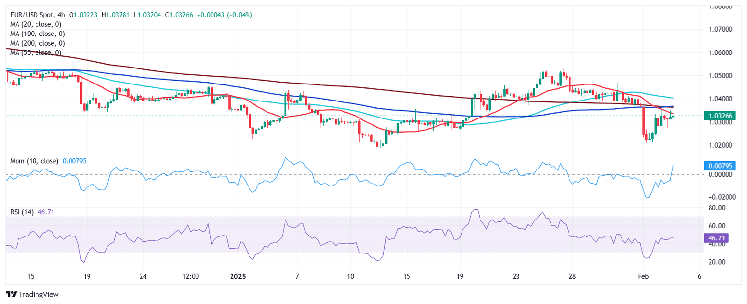 The EUR/USD pair held above 1.0300 throughout the first half of Tuesday, reaching the 1.0340 region in the mid-European session, yet unable to extend its Monday recovery. Concerns about United States (US) President Donald Trump’s announcement on tariffs receded after talks with Mexican and Canadian authorities.