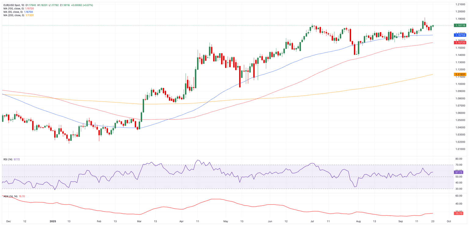 EUR/USD has started the week on the front foot, pushing to sustain a break above 1.1800. If momentum holds, a move toward yearly peaks above 1.1900 is possible. The key upside marker sits at the 2025 ceiling of 1.1918 (September 17). A clear break would open the way to the psychological 1.2000 level.