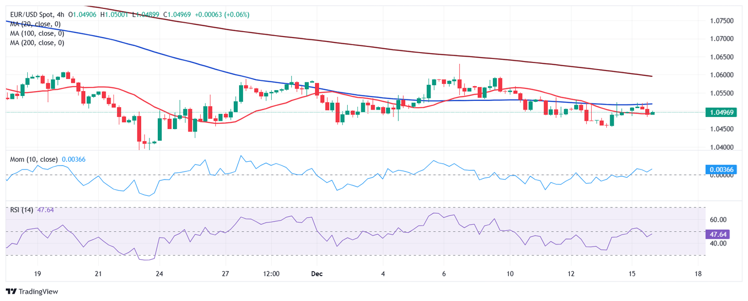 - EUR/USD is neutral to bearish in the near term, support at 1.0460.
