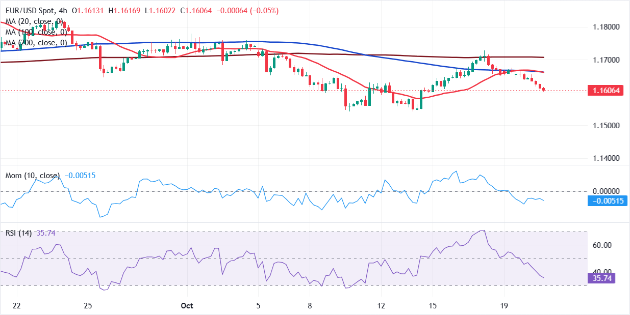 EUR/USD Price Forecast: Downward pressure increases, 1.1600 at risk