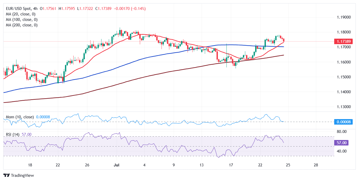The EUR/USD pair retreated from a fresh two-week peak at 1.1781 posted during Asian trading hours, hovering around 1.1750 ahead of the European Central Bank (ECB) monetary policy announcement. The US Dollar (USD) edged lower on the back of risk appetite, amid headlines indicating a trade deal between Japan and the United States (US).