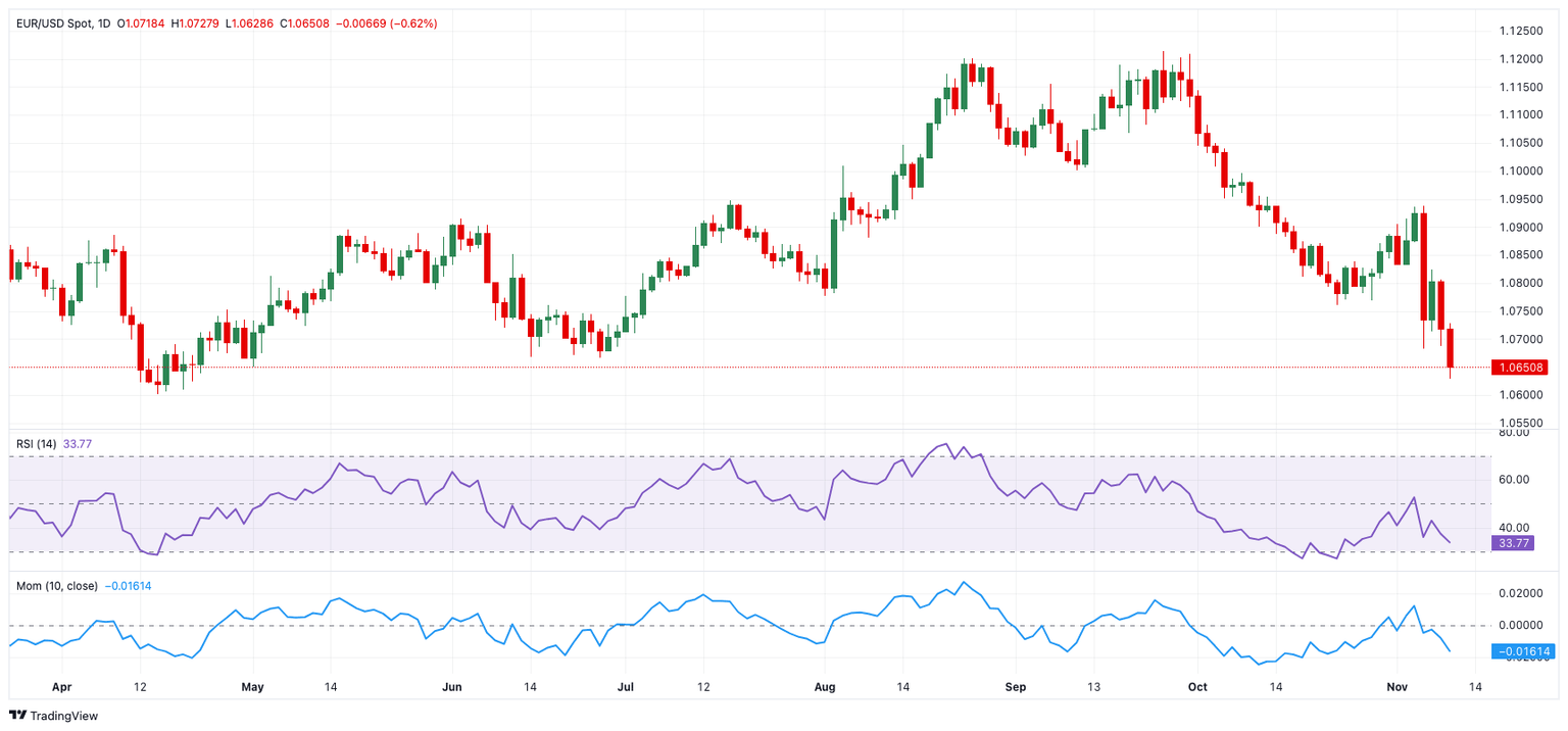 Extra losses might push the EUR/USD down to its November low of 1.0.628 (November 11), ahead of the 2024 bottom of 1.0601 (April 16).