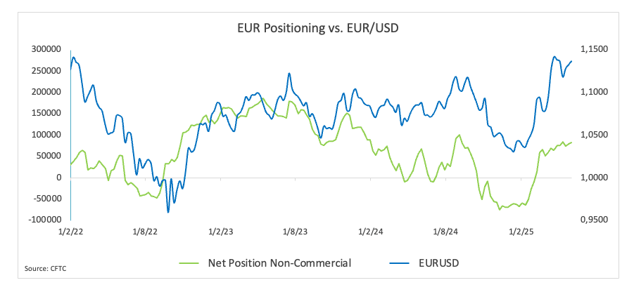 CFTC data show a growing bullish tilt on the European currency. Net long positions rose to a three-week high of around 82.8K contracts, while overall open interest rose past 781K contracts, the highest in the last three years. Meanwhile, commercial hedgers expanded their short positions to nearly 138.3K contracts, suggesting growing institutional interest in managing Euro upside risk.