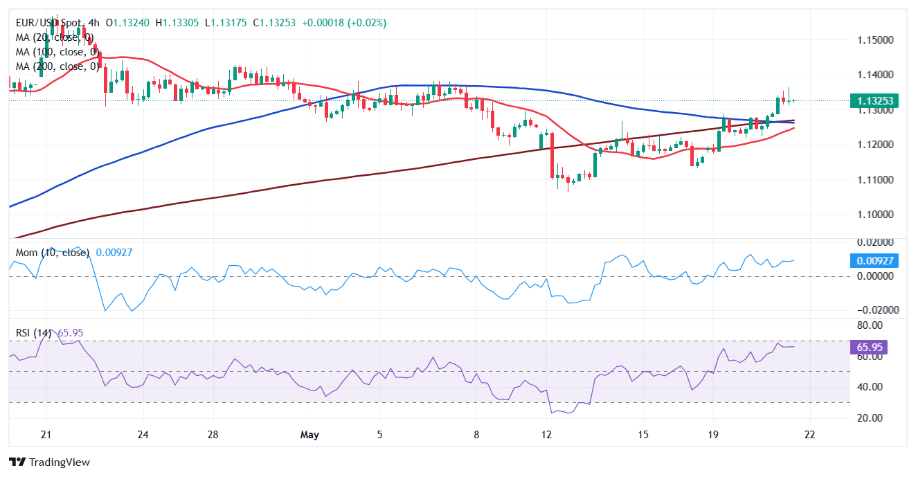 - EUR/USD holds on to gains above 1.1300, needs fresh impetus to break higher.