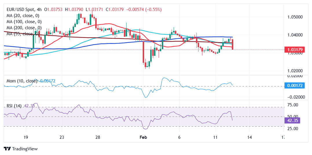 - EUR/USD is testing the 1.0300 region and poised to break lower.