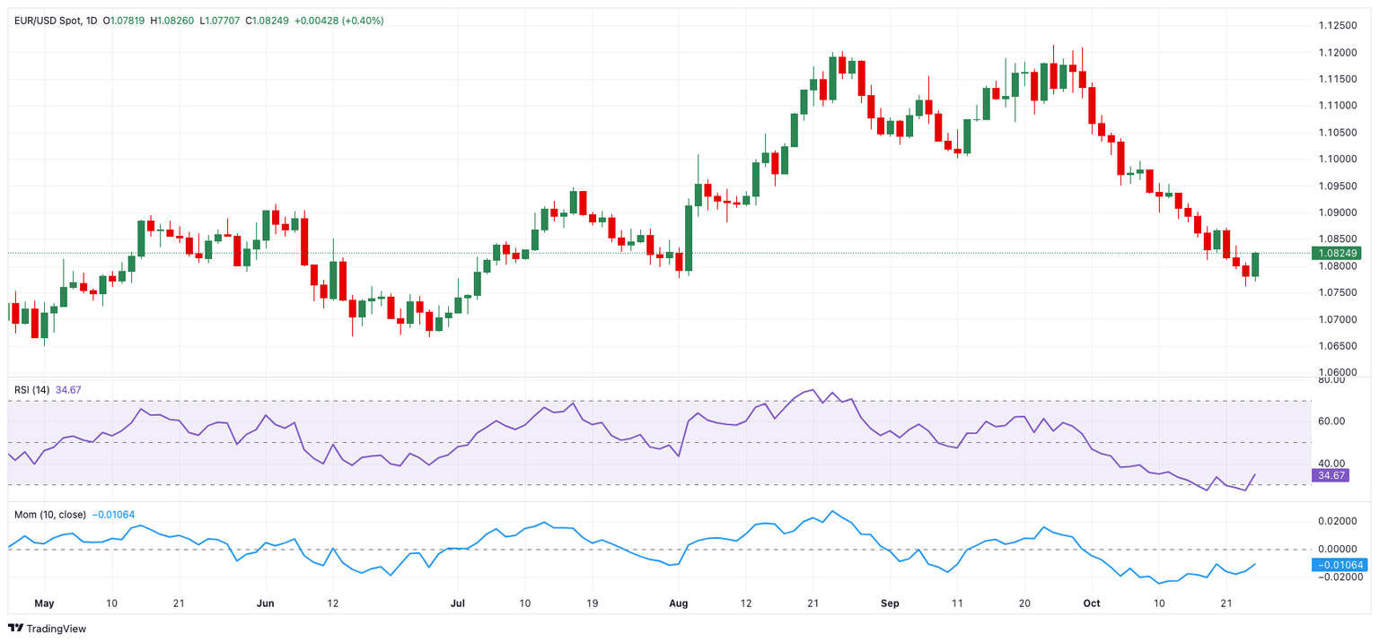 EUR/USD regained some composure and managed to partially reverse its steep multi-week decline on Thursday after bottoming out in new lows around 1.0760 during the previous trading session.
