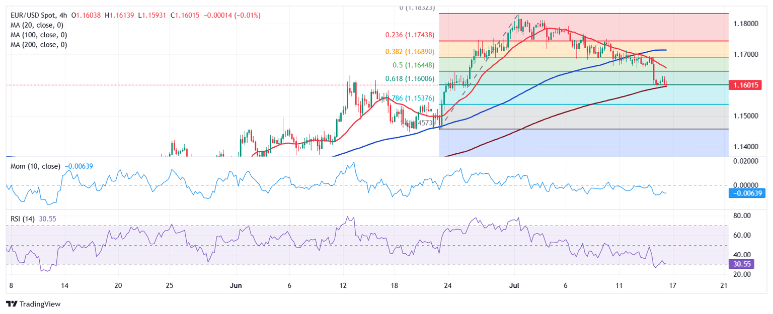 The EUR/USD pair bottomed at 1.1592 on Tuesday, a fresh July low, as the US Dollar (USD) rallied on the back of hot United States (US) inflation and mounting tariffs concerns. June Consumer Price Index (CPI) figures came in line with the market’s expectations, yet above May’s reading. The annual CPI hit 2.7%, above the previous 2.4%, while the core annual reading posted 2.9%, up from the 2.8% posted in May.