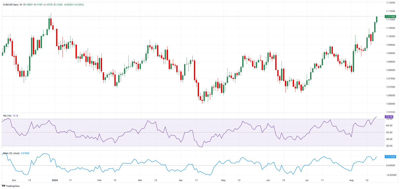 EUR/USD extended its gains for a third consecutive day, prolonging the optimism seen at the beginning of the week and reaching new highs for 2024 around 1.1120, due to the intense weakness in the US Dollar (USD).