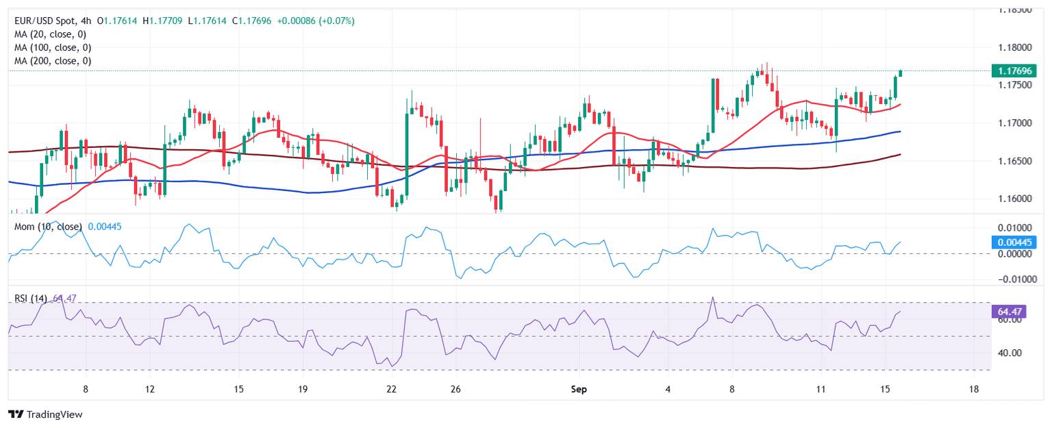 The EUR/USD pair started the week with a positive bias, advancing beyond the 1.1750 mark during European trading hours. The US Dollar (USD) trades with a softer tone amid a better market mood, and despite caution ahead of major central banks’ announcements scheduled throughout the week, including the Federal Reserve (Fed) monetary policy announcement.