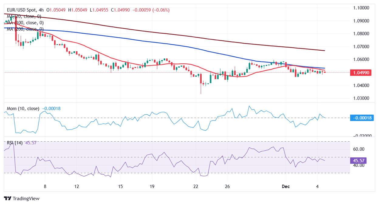 The EUR/USD pair struggles around the 1.0500 mark on Wednesday as the US Dollar (USD) regained its strength, partially backed by risk aversion. Political turmoil in France and South Korea took its toll on financial markets, with most Asian and European indexes reflecting the dismal mood by trading in the red.