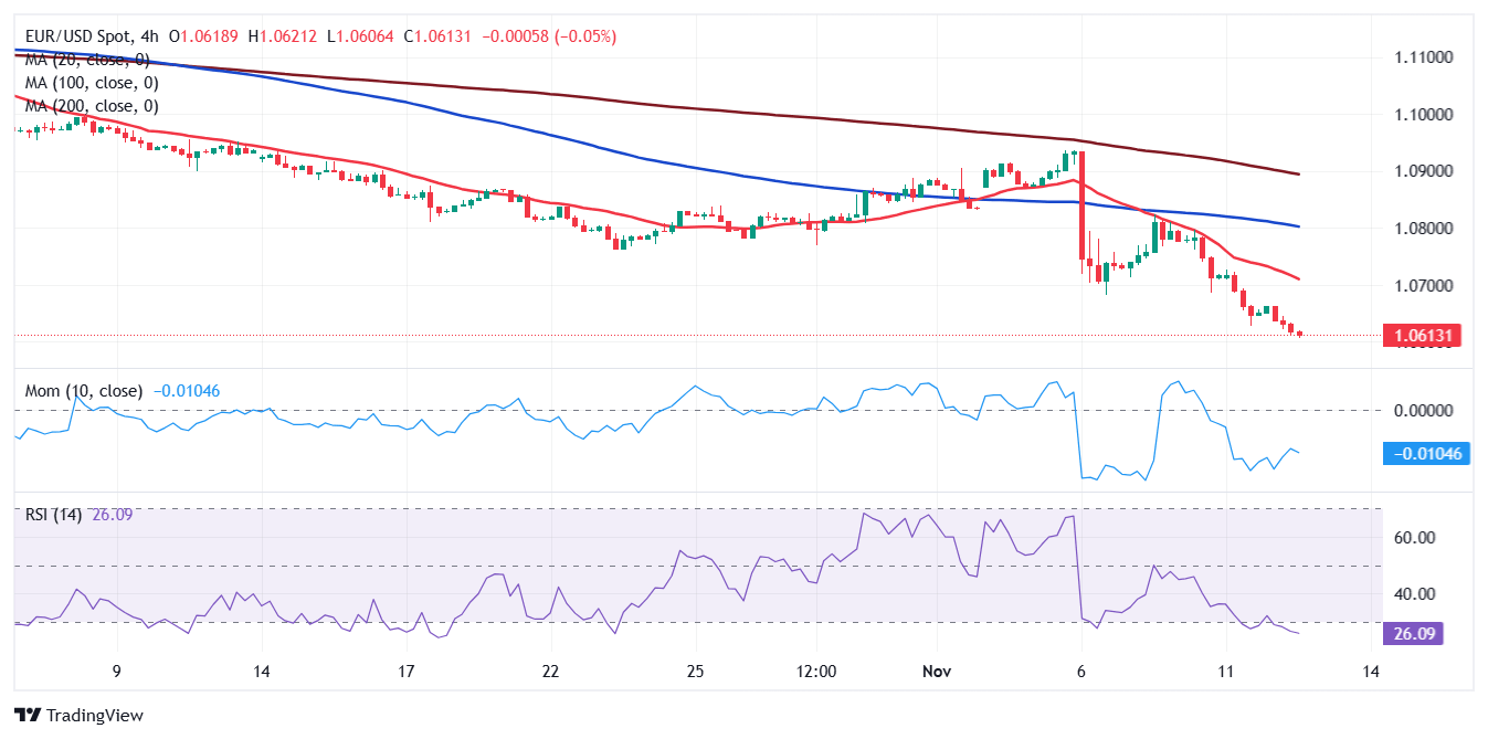 - EUR/USD maintains its strong bearish momentum and aims to break below 1.0600.