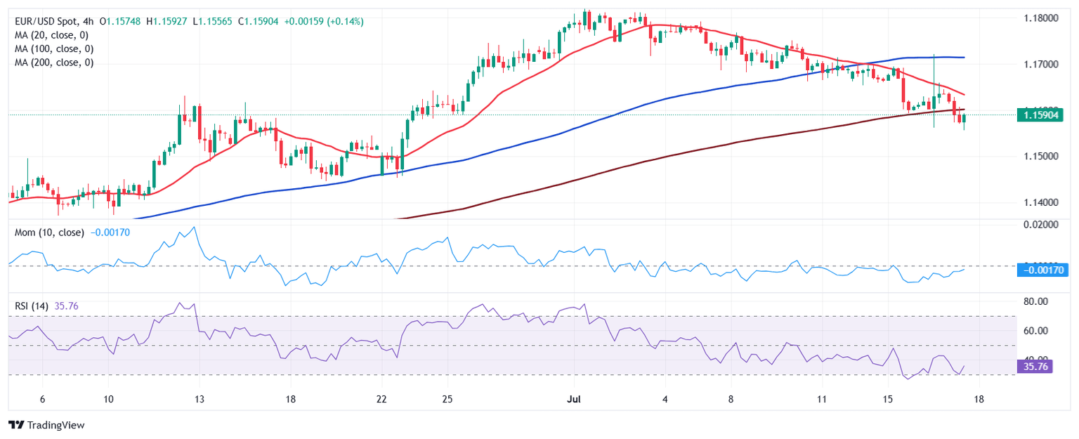 The EUR/USD pair remains under pressure, trading near a fresh weekly low at 1.1552. The US Dollar (USD) retains its firm tone across the FX board after a volatile day in which the Federal Reserve’s (Fed) autonomy and tariffs retained the spotlight.