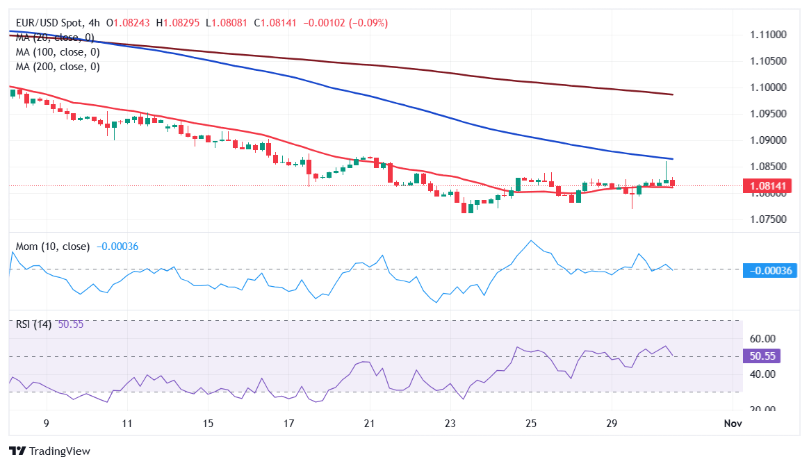 - EUR/USD trimmed early gains and has room to extend its slide below 1.0800.