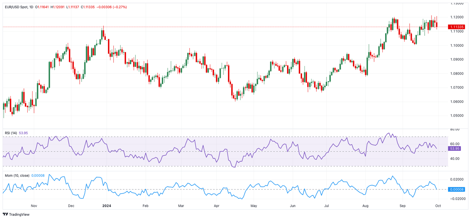 Further EUR/USD increases are expected to encounter initial resistance at the 2024 top of 1.1214 (September 25), followed by the 2023 peak of 1.1275 (July 18).
