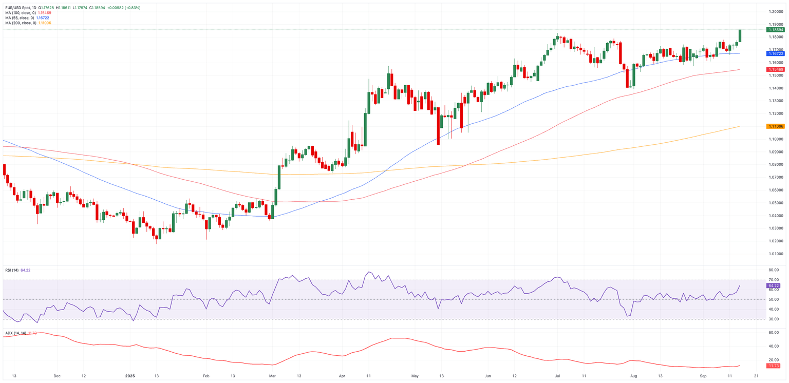 On the topside, resistance sits at the 2025 ceiling of 1.1878 (September 16). A clear move above would bring the September 2021 high at 1.1909 into play, followed by the psychological 1.2000 mark.