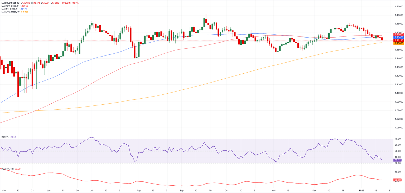 - EUR/USD comes under heavy pressure, breaking below the 1.1600 support.