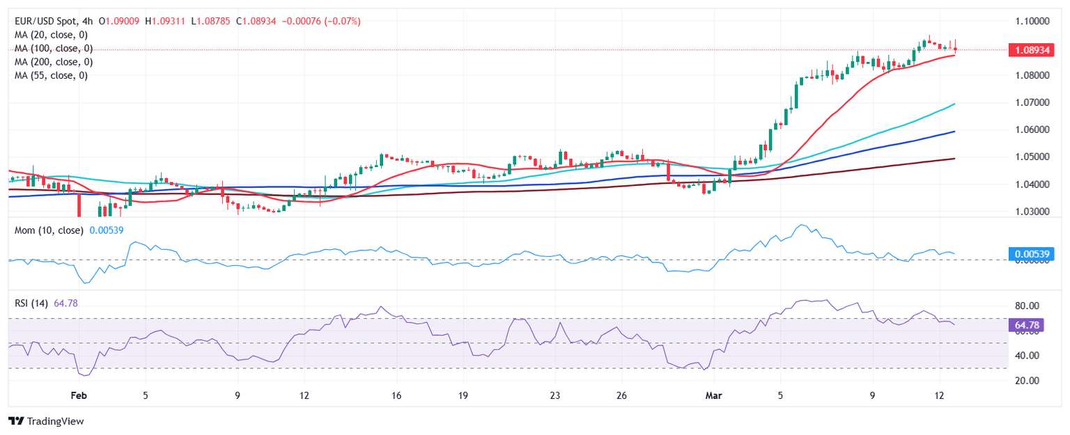 - EUR/USD battles around 1.0900, risk skews to the upside.