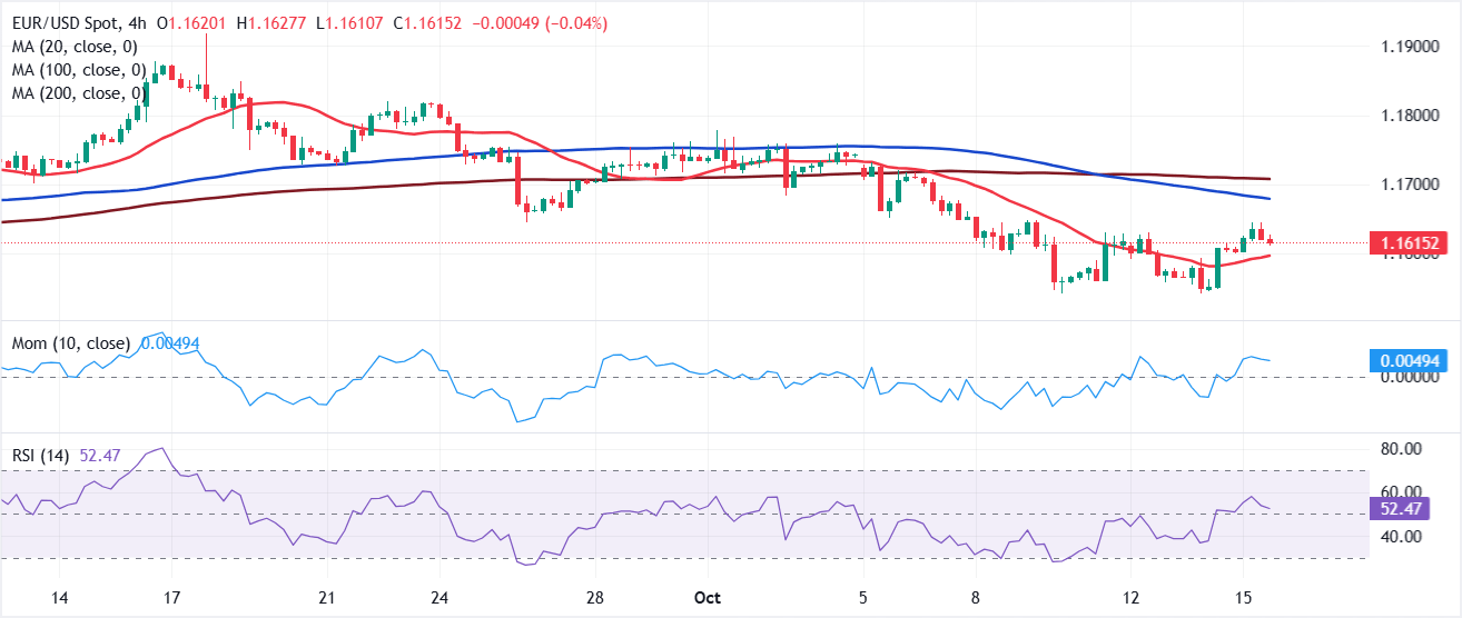 The EUR/USD pair found a near-term bottom at 1.1542 on Wednesday, currently trading at around 1.1615. The US Dollar (USD) surged throughout the first half of the week amid political and trade noise, backing demand for safe-haven assets. Concerns revolved around the United States (US), as the federal government remains shut down, while President Donald Trump unexpectedly decided to re-escalate the trade war with China on Friday.