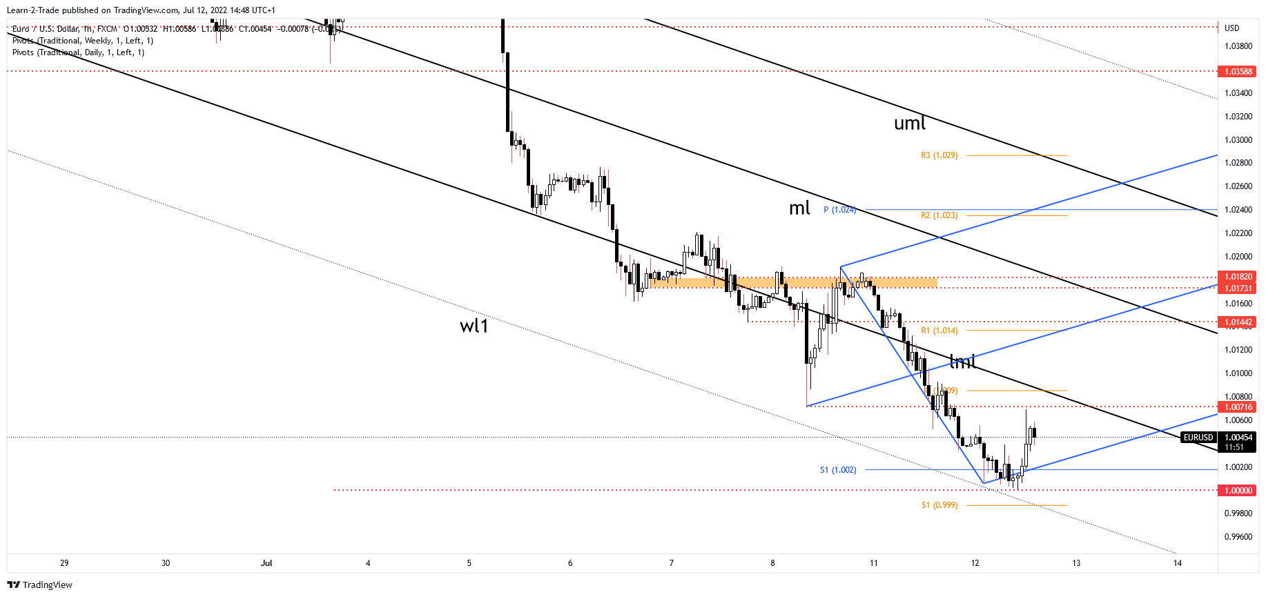 As you can see on the H1 chart, the EUR/USD pair reached the 1.0000 level where it has found support. Its failure to stay below the weekly S1 (1.0020) downside obstacle signaled that the sellers are exhausted. Now, it seems determined to come back higher at least towards the 1.0071 key upside obstacle. The descending pitchfork’s lower median line (lml) represents a dynamic resistance. As long as it stays under this line, the bias remains bearish and the EUR/USD pair could drop deeper anytime. Technically, the current rebound could bring new selling opportunities from around the near-term resistance levels.
