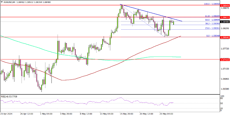 A clear move above the 1.0860 resistance might send it toward the 1.0900 level. Any more gains might call for a move toward the 1.0950 level in the near term.