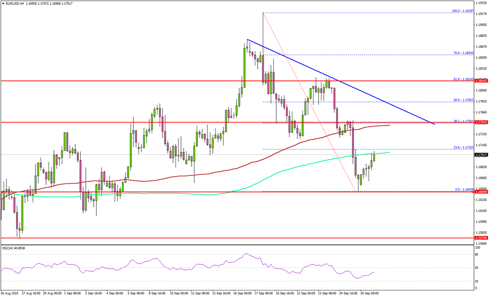 There was a minor increase above the 1.1680 level. On the upside, the pair could face resistance near the 1.1735 level. The first major hurdle for the bulls could be 1.1750 since it coincides with the 38.2% Fib retracement level of the downward move from the 1.1918 swing high to the 1.1645 low.