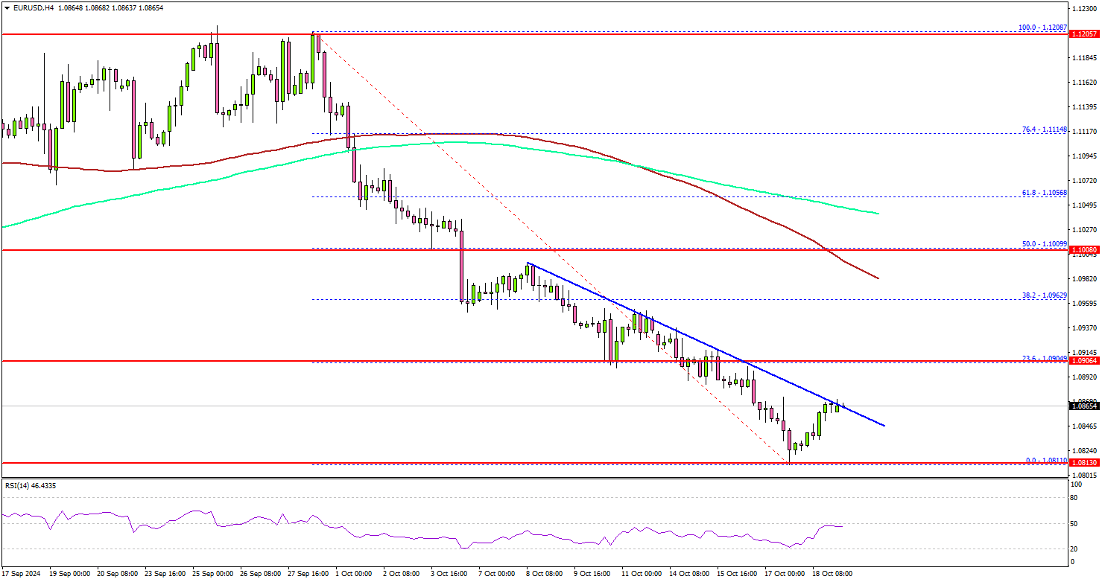 On the downside, immediate support sits near the 1.0820 level. The next key support sits near the 1.0800 level. Any more losses could send the pair toward the 1.0750 level.