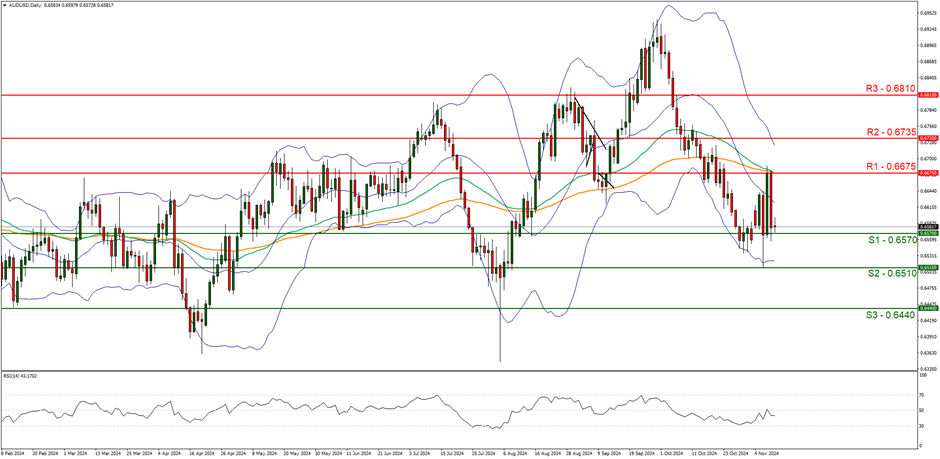 On the commodities front, oil prices appear to be moving in a sideways fashion after failing to break above the 71.85 (R1) resistance line. We opt for a sideways bias for the commodity’s price and supporting our case is the narrowing of the Bollinger bands which tend to imply low market volatility in addition to the failure to break above our aforementioned resistance level. Yet, some caution is warranted with the RSI indicator below our chart currently registering a figure of 40 which tends to imply bearish market tendencies. Nonetheless, for our sideways bias to continue, we would require the commodity to remain confined between the sideways moving channel defined by the 64.75 (S1) support level and the 71.85 (R1) resistance line. On the flip side, for a bearish outlook we would require a clear break below the 64.75 (S1) support level, with the next possible target for the bears being 57.30 (S2) support base.