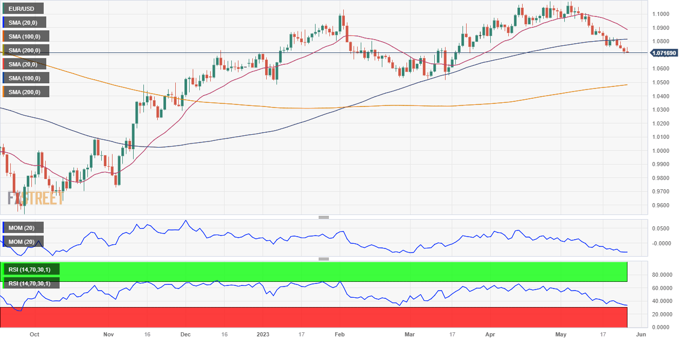 The EUR/USD pair fell for a third consecutive week and flirts with the 1.0700 level ahead of the close, as demand for the US Dollar extended into the weekly close.