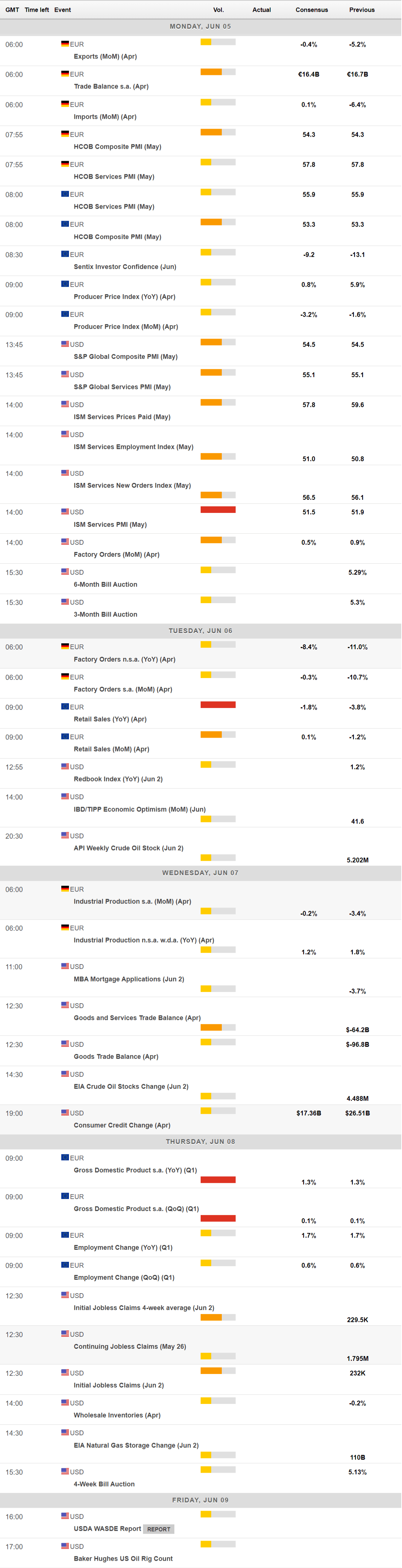 The upcoming week will bring the US May ISM Services PMI, foreseen at 51.5, down from 51.9 previously. The EU will publish April Retail Sales and the final estimate of the Q1 Gross Domestic Product (GDP). Ahead of the central banks’ meetings in mid-June, European and American policymakers will enter a blackout period.