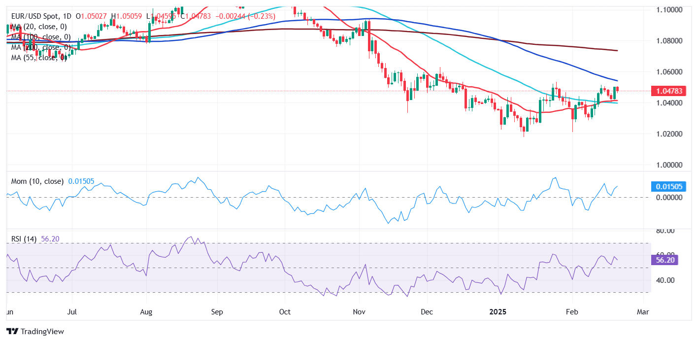 The EUR/USD pair fell throughout the first half of the week, recovering in the second half to close it little changed at around 1.0480. The US Dollar (USD) benefited from the risk-averse environment, the latter resulting from the United States (US) President Donald Trump's tariffs plan.