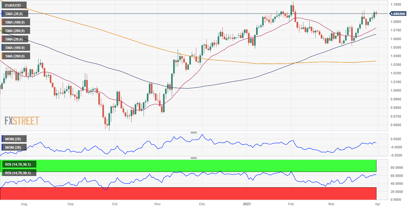 The EUR/USD pair marched higher for a second consecutive week, settling on Friday just ahead of 1.0900. The pair advanced for four days in a row, giving up some ground ahead of the weekly close amid profit-taking and a particular persistent caution after the latest banking turmoil.