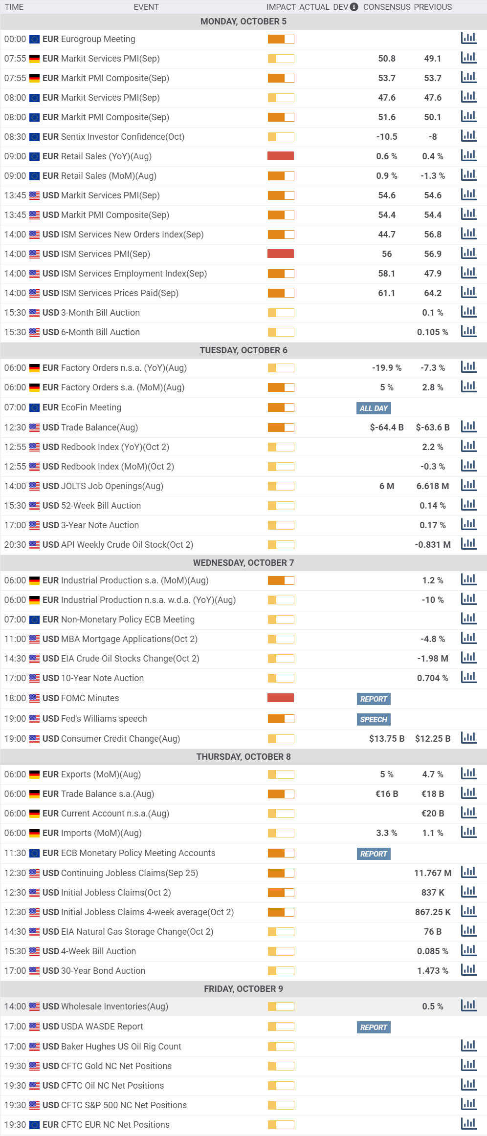 The upcoming week will kick-start with the final versions of the September Markit Services PMIs for the EU and the US, and the official ISM Services PMI for this last, foreseen at 56 from 56.9 in the previous month.