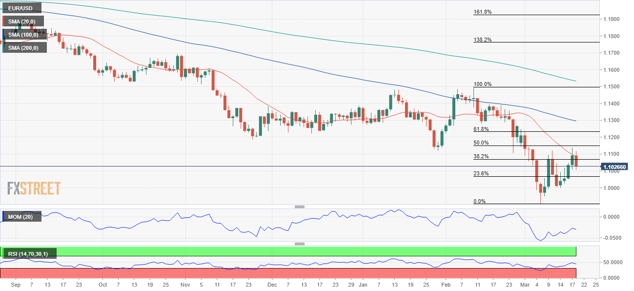 The EUR/USD pair managed to recover some ground this past week but ended it at around 1.1020, below the 38.2% retracement of the 2022 slump at 1.1070. Financial markets were all about Russia-Ukraine developments and the lack of progress in peace talks after three weeks.
