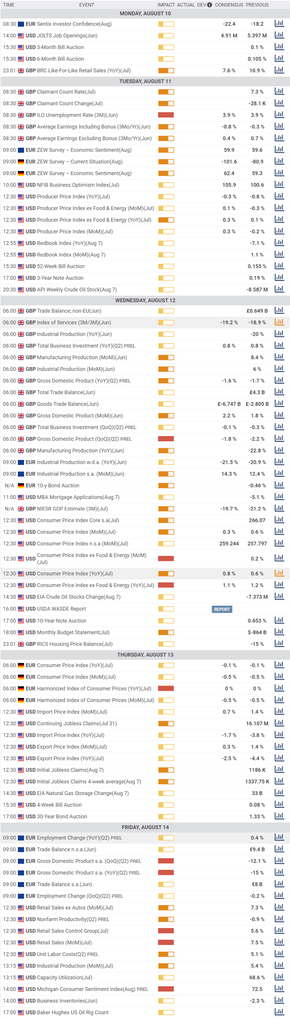 During the upcoming days, Germany and the US will publish July inflation figures, although the macroeconomic calendar will remain quite light until Friday. In the last trading day of the week, the EU will publish a revision of Q2 GDP, while the US will unveil July Retail Sales and the preliminary August Michigan Consumer Sentiment Index.