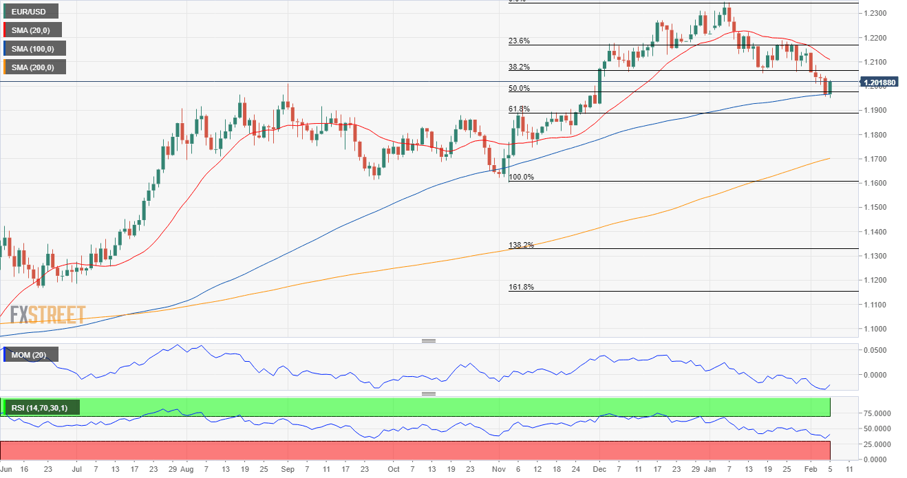 Bulls may have better chances if the pair recovers above 1.2060, the 38.2% retracement of the mentioned rally. The next relevant resistance is the 1.2100 level, followed by the 1.2170/80 price zone. Below the weekly low, 1.1885, the next Fibonacci support is the main one to watch as if it finally gives up, the decline has room to continue towards the 1.1600 threshold.