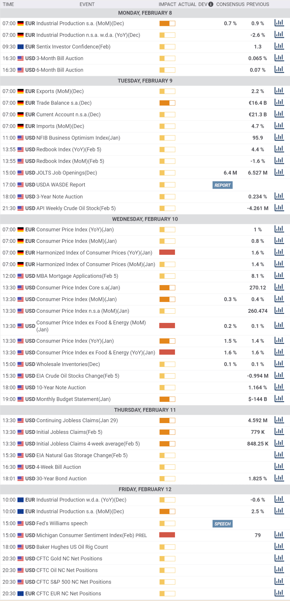 The next week will be much lighter in terms of macroeconomic data, as most of the scheduled releases tend to have no impact on prices. Wednesday is the day, as Germany and the US will post updates on January inflation. On Friday, the US will release another first-tier figure, the preliminary estimate of the February Michigan Consumer Sentiment Index.