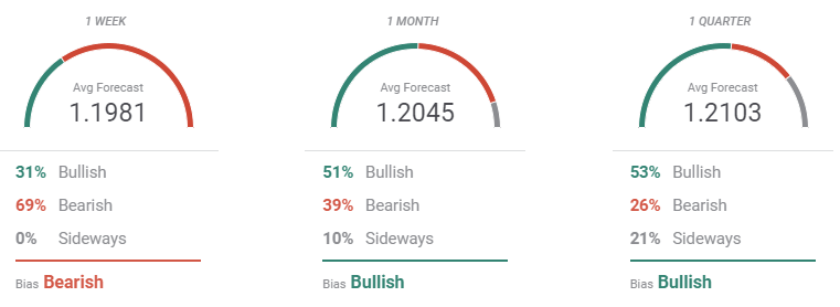 According to the FXStreet Forecast Poll, the greenback will retain its strength throughout the upcoming week, but the pair may resume its advance afterwards. 69% of the polled experts are betting for a decline in the near term, but bulls are a majority int he monthly and quarterly views, with the pair seen on average at 1.2045 and 1.2103 respectively.