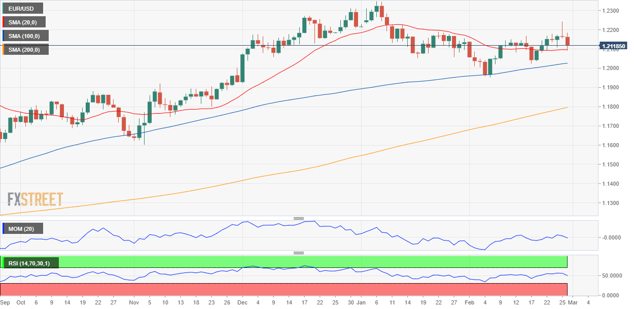 Risk-related sentiment and reflation trade set the market’s tone this week and will likely keep driving currencies during the next one. The EUR/USD pair peaked on Thursday at 1.2242, its highest level in over a month, but trimmed gains on Friday to finish a second consecutive week unchanged just above the 1.2100 level.