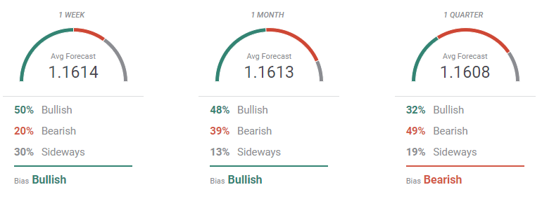 The FXStreet Forecast Poll suggest that the EUR/USD pair will remain around the current level, despite bulls are a majority in the weekly and monthly perspectives. Bears become a majority in the quarterly perspective, up to 49% of the polled experts.