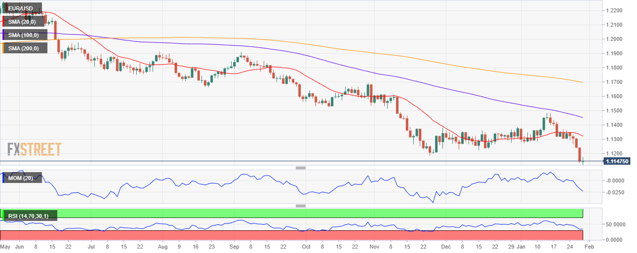 - EUR/USD is technically bearish and could reach the 1.1000 figure in the near term.