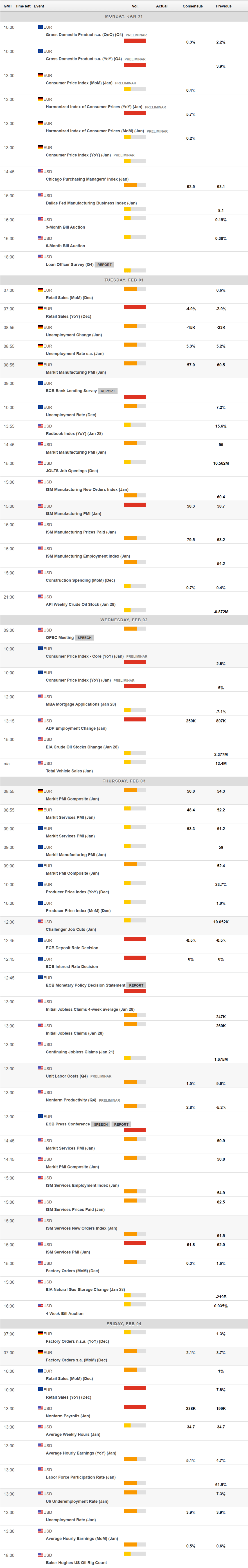 The upcoming week will start with the EU publishing the preliminary estimate of its Q4 GDP, foreseen at 0.3% QoQ, and Germany releasing the preliminary estimates of January inflation figures. The country will publish December Retail Sales and January unemployment figures on Tuesday when the US will release the official ISM Manufacturing PMI.