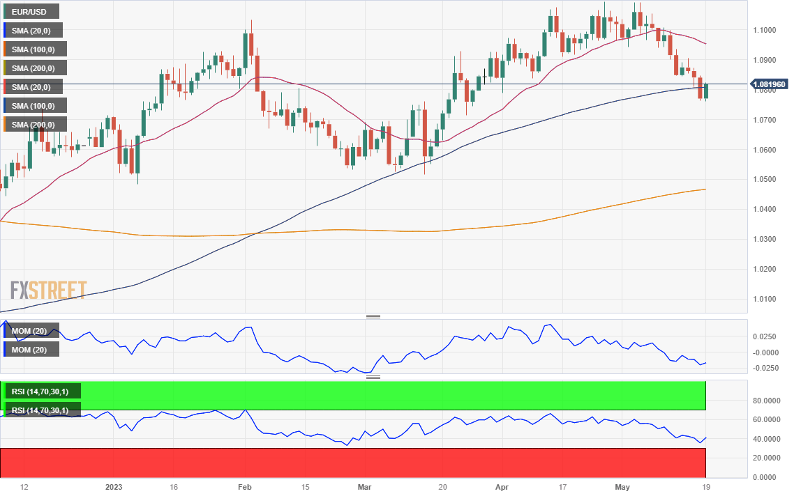 The EUR/USD pair edged lower for a second consecutive week and settled just above the 1.0800 level. Financial markets started the week in a down mood amid concerns related to the United States (US) debt-ceiling issues. A couple of weeks ago, US Treasury Secretary Janet Yellen warned that if Congress did not agree on an extension, the country will default as soon as June 1. Ever since, top Congressional lawmakers have engaged in negotiations, with progress coming only this week.