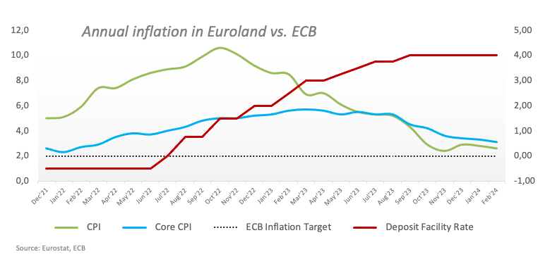 In the meantime, final Manufacturing PMIs in both Germany and the broader Eurozone showed the sector still appears mired in the contraction territory (<50), while the job report in Germany came in below consensus and the unemployment rate in the Eurozone ticked lower in January. Inflation, on the other hand, resumed its downward trend in February, as per preliminary Consumer Price Index (CPI) figures in the Eurozone and Germany.