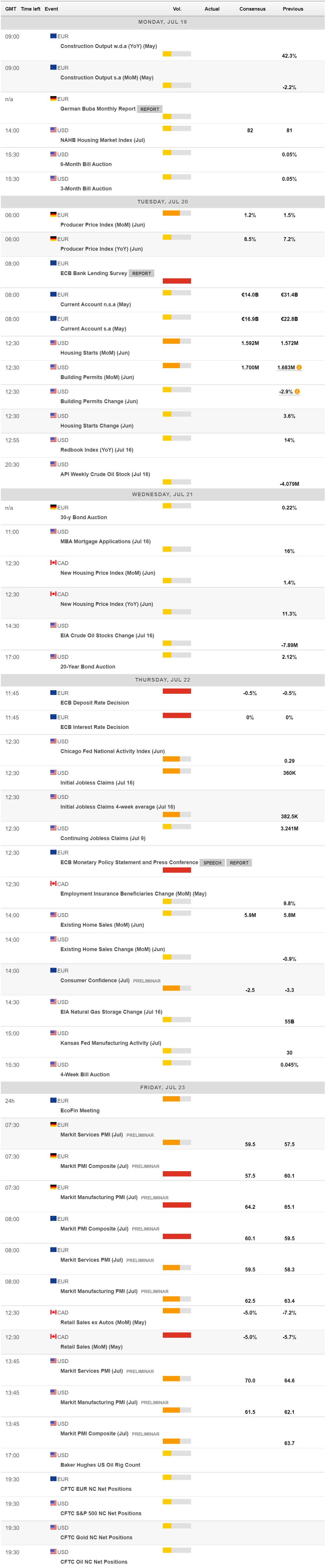 The main event next week will be the European Central Bank monetary policy decision. Policymakers are widely anticipated to maintain the current policy unchanged after the latest news on the matter. Investors will be looking for details on the new forward guidance and how tolerant policymakers would be with inflation. The EU will publish July Consumer Confidence, foreseen at -2.5 from -3.3 previously.